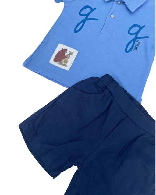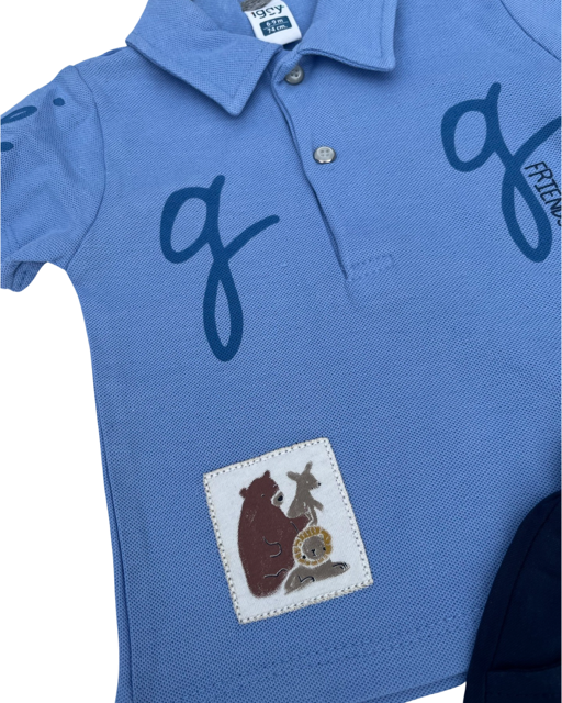 Αγορίστικο καλοκαιρινό σετ! Μπλουζάκι τύπου πόλο μπλε με ζωάκια & υφασμάτινο παντελονάκι!🐻