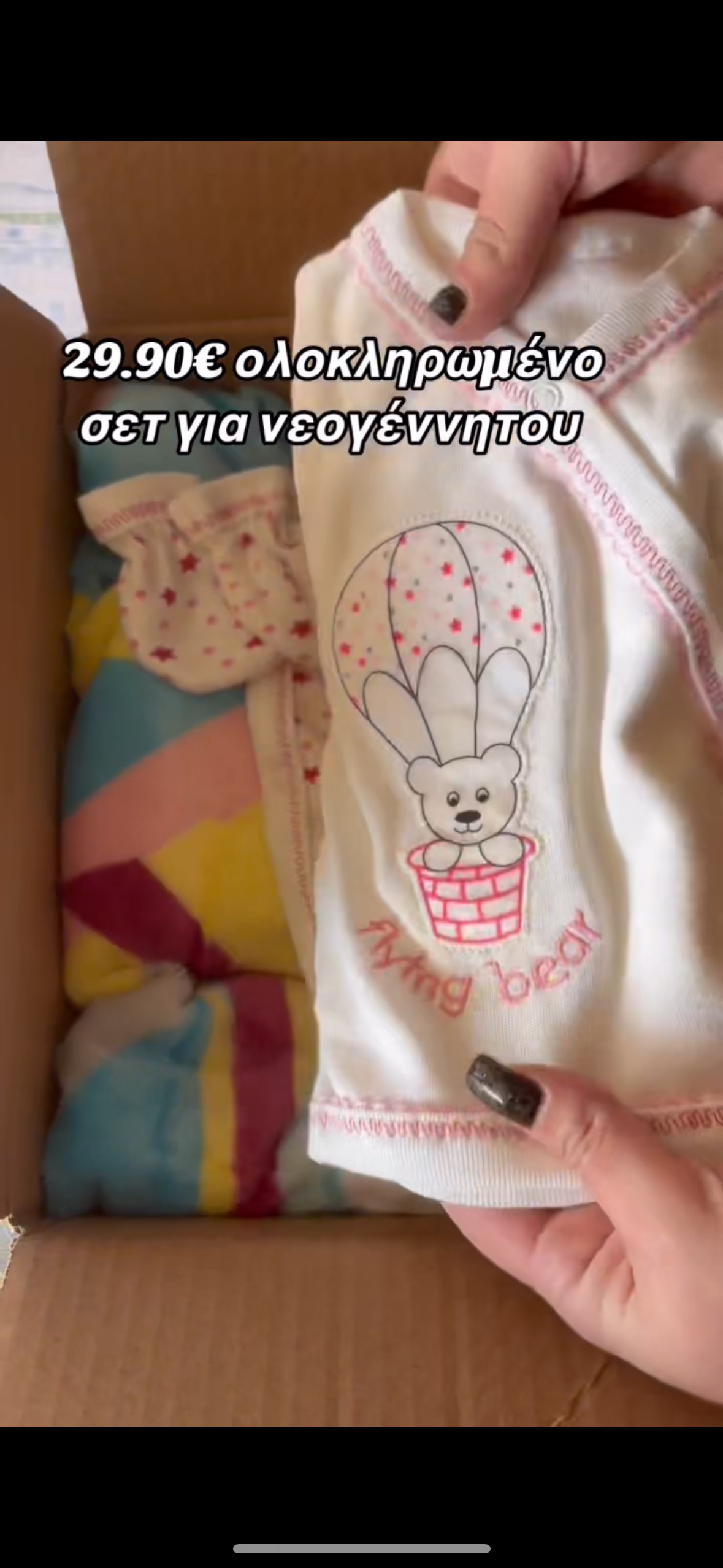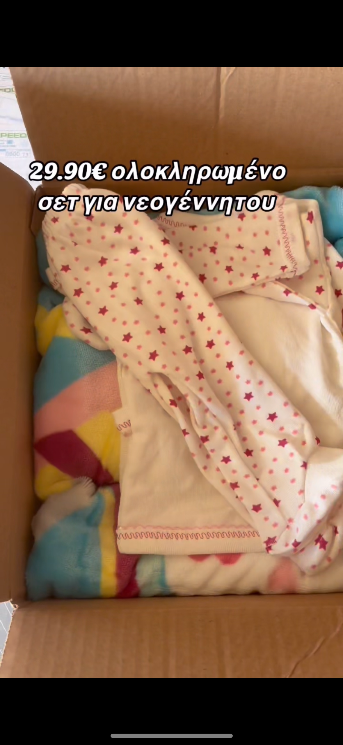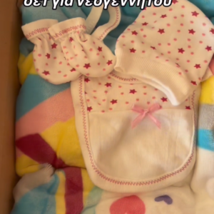Το σετ περιλαμβάνει μια κουβέρτα βελουτε 100χ120 με σχέδιο μονόκερο και ένα ολοκληρωμένο σετ νεογέννητου με μπλουζάκι παντελονάκι σκουφάκι χούφτες και σαλιαρα θα σας έρθουν μέσα σε κουτί και με σακούλα δώρου